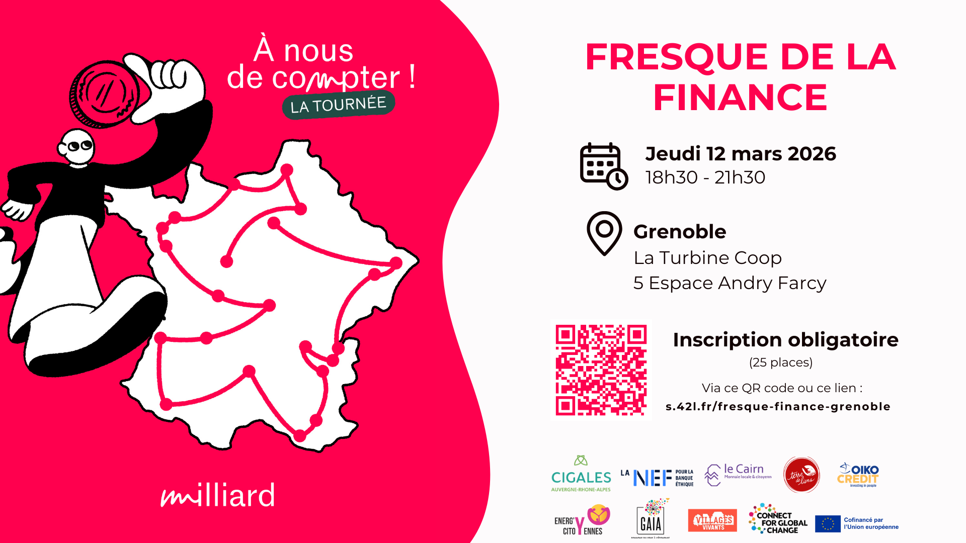 Venez comprendre le fonctionnement du système financier et son influence sur la société et l'environnement avec des cas pratiques. Vous imaginerez aussi ensemble le changement de ce système avec des leviers d'action !