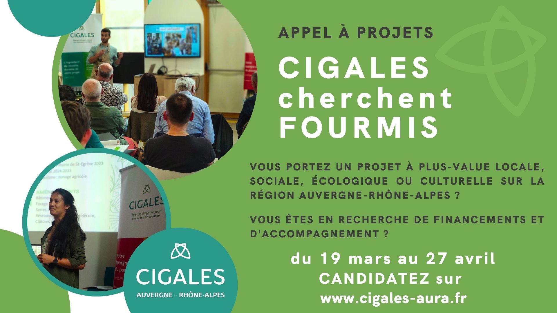 Merci de vous inscrire pour participer à une réunion de présentation des CIGALES et de notre appel à projets "CIGALES cherchent Fourmis" printemps 2026 dédiée aux porteurs et porteuses de projets et partenaires.
